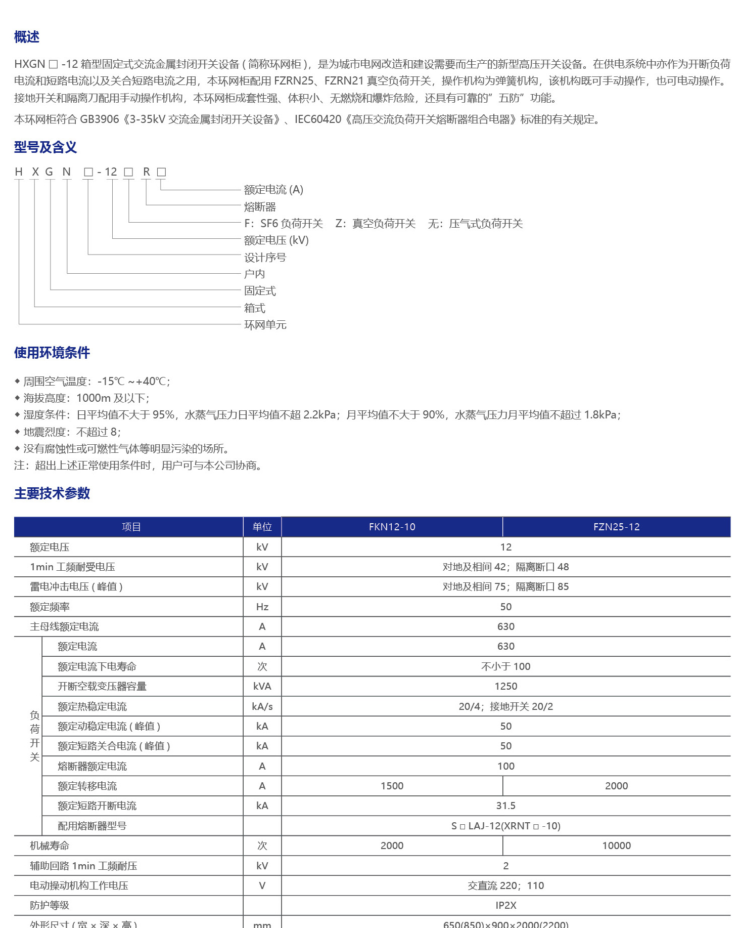 HXGN☐-12箱型固定式交流金属封闭开关设备
